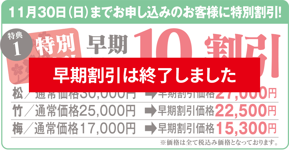 また、11月30日(日)までにご注文の場合には、早期割引としておせち料理代金を10%割引させていただきます。